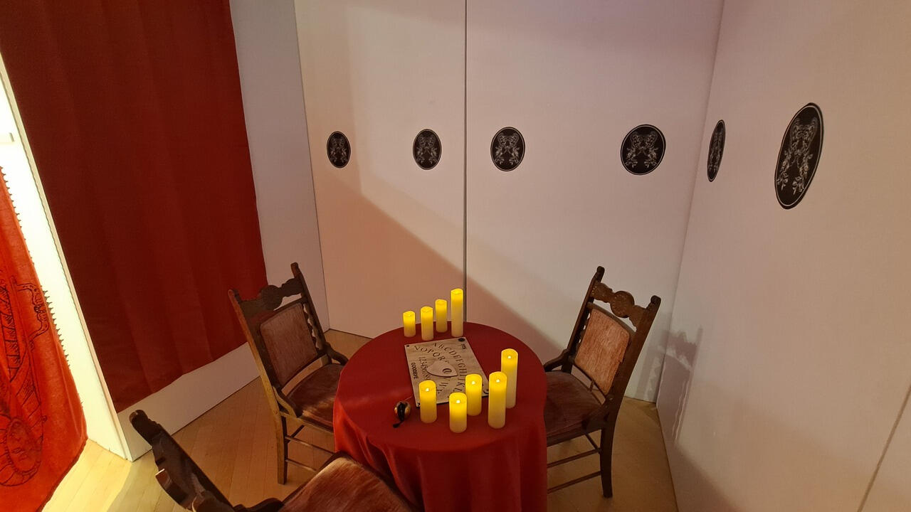 I placed a vintage brass bell on the Séance Table so that visitors could ring it to call me over to the Séance Room. I held this séance as a performance on the opening night of the exhibit.