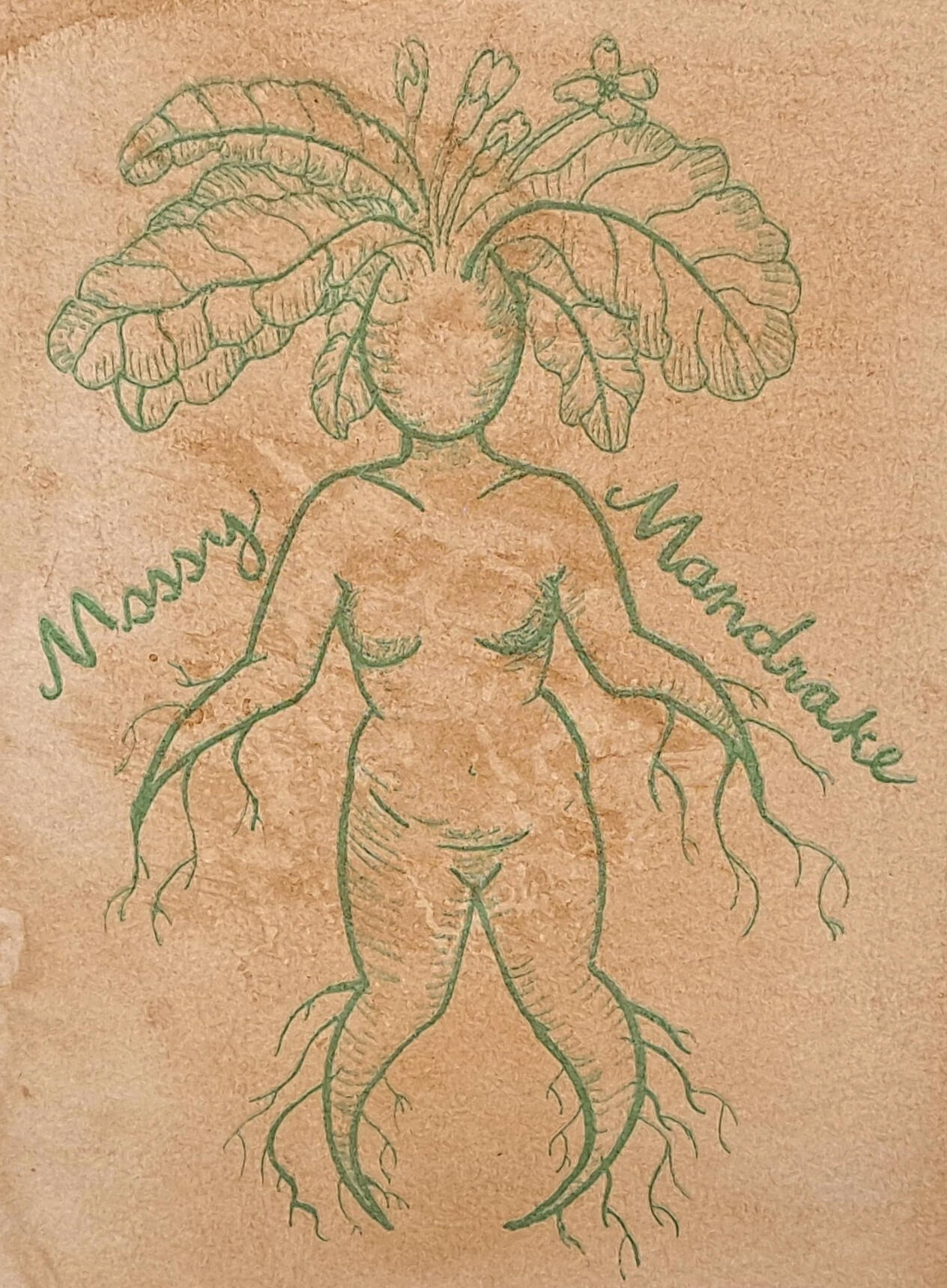 Cernunnos & the Green Man, silkscreen print, acrylic-based ink, and incense on embossed watercolor paper.